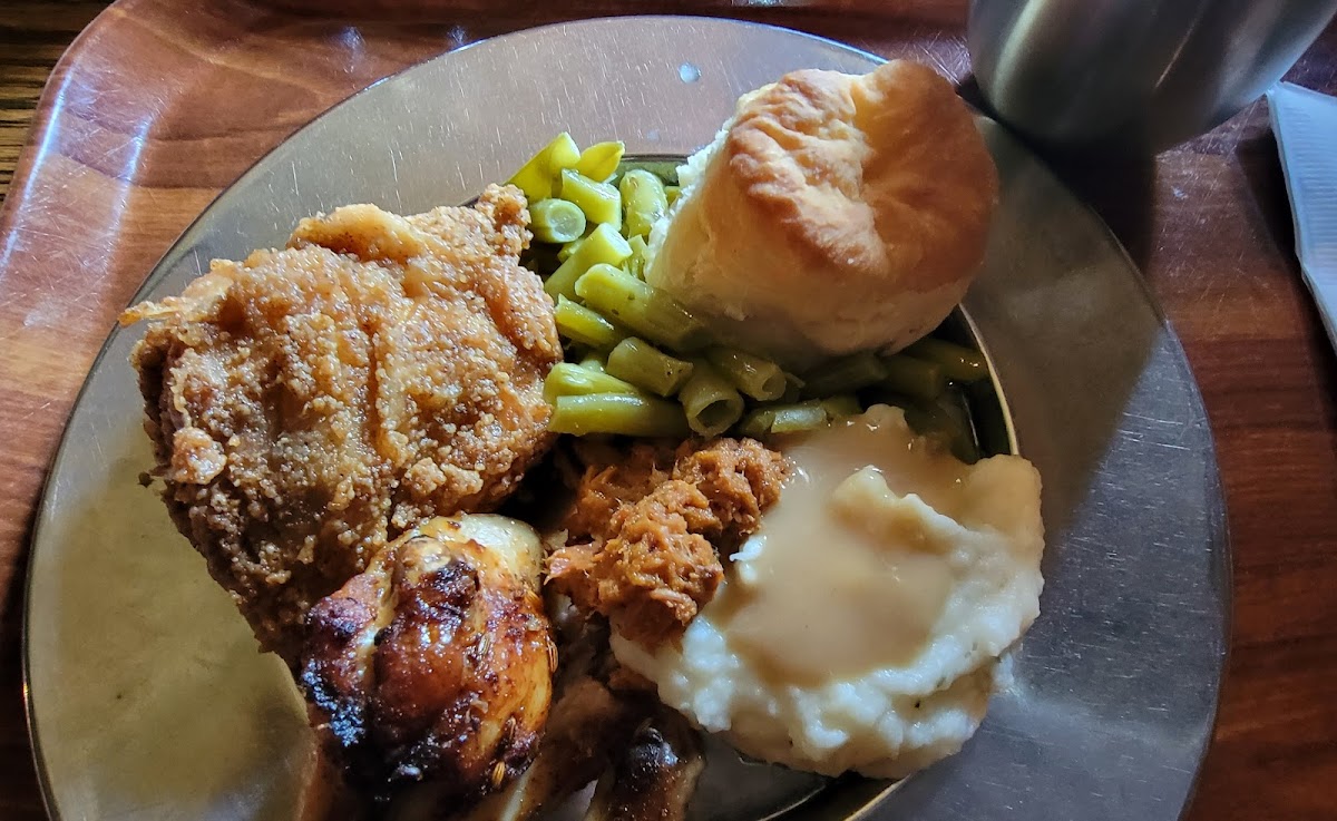 The menu leans heavily into traditional Southern comfort cooking, and it does so unapologetically. Meals are served family-style, which means long wooden tables, shared dishes, and a pace that encourages conversation. On my visit, platters of fried chicken, country ham, and roast beef were passed around alongside bowls of mashed potatoes, black-eyed peas, and stewed tomatoes. The chicken alone deserves its reputation: crisp outside, juicy inside, and seasoned simply enough to let technique shine. According to food historians from Colonial Williamsburg, early American taverns relied on similar cooking methods because cast-iron frying preserved moisture while maximizing flavor, and that approach clearly still works.